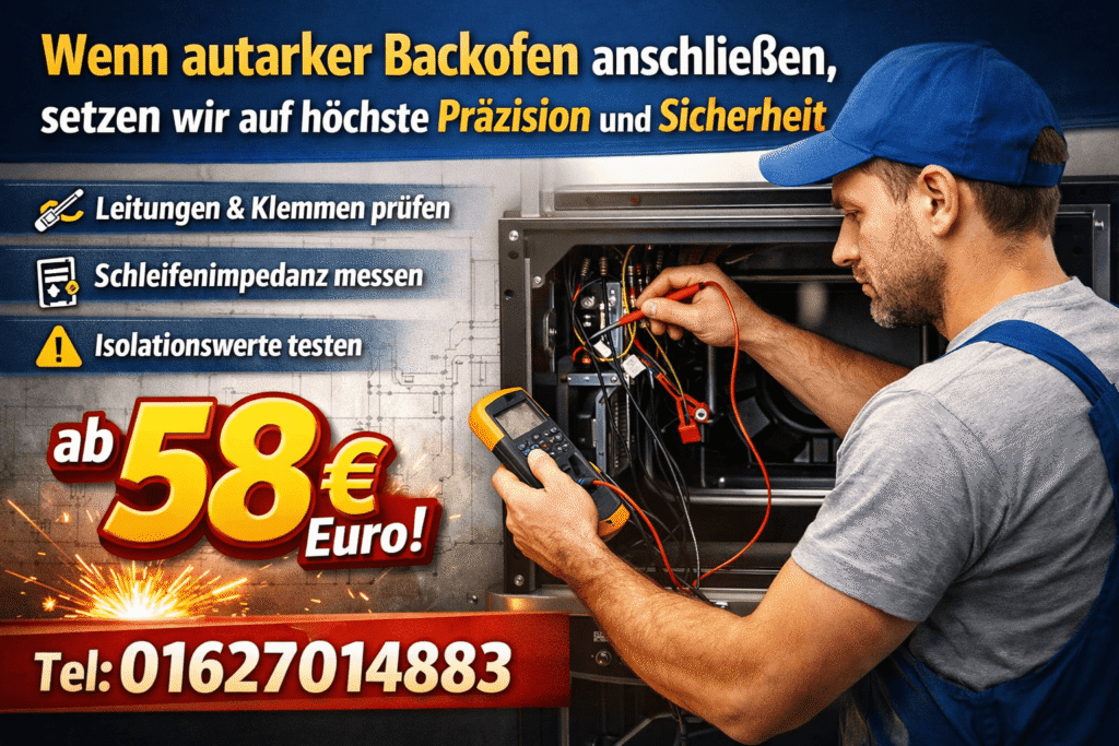 Beim backofen autark anschluss ist daher die Messung nach dem Anschluss kein Zusatz, sondern die eigentliche Absicherung der Ausführung. Aus diesem Grund prüfen wir Schutzleiterwiderstand, Isolationswiderstand und die Bedingungen für die automatische Abschaltung, bevor das Gerät endgültig in Betrieb geht.
