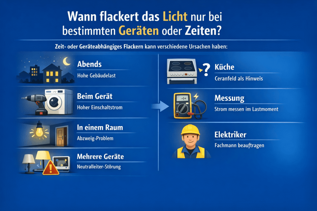 Was bedeutet es, wenn licht flackert im haus nur bei bestimmten Geräten oder zu bestimmten Zeiten auftritt?
